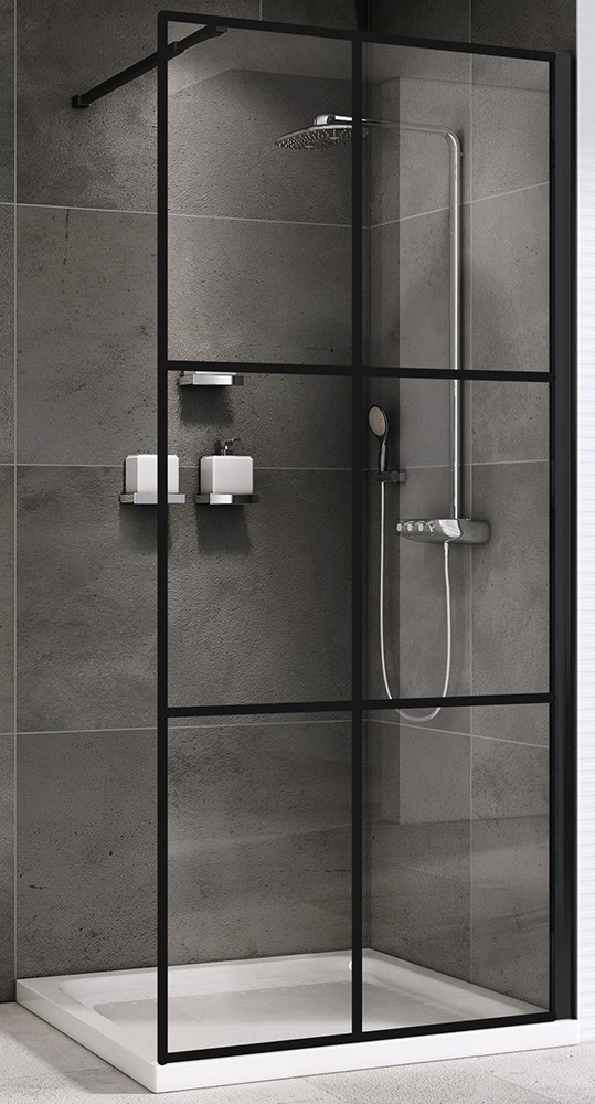 ABBER Immer Offen Душевая перегородка профиль - черный / стекло - прозрачное ширина 120 см