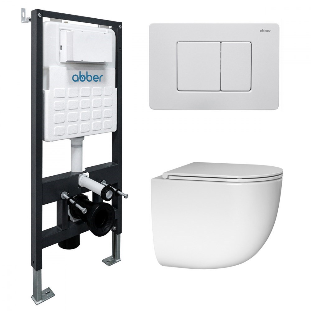ABBER Комплект подвесной унитаз Bequem AC1132TC белый, с закрытым дном с инсталляцией AC0105 и кнопкой AC0120MW белая матовая
