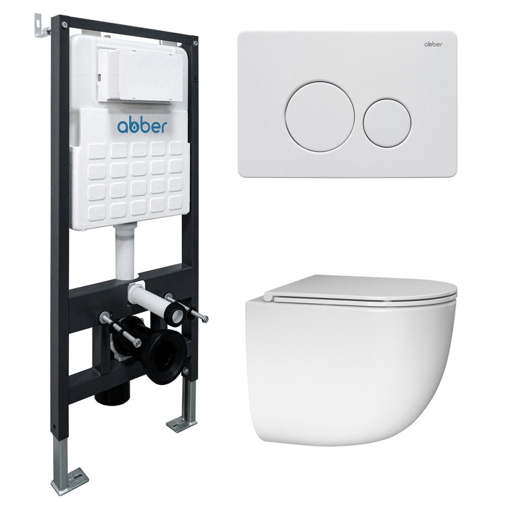 ABBER Комплект подвесной унитаз Bequem AC1132TC белый, с закрытым дном с инсталляцией AC0105 и кнопкой AC0121MW белая матовая