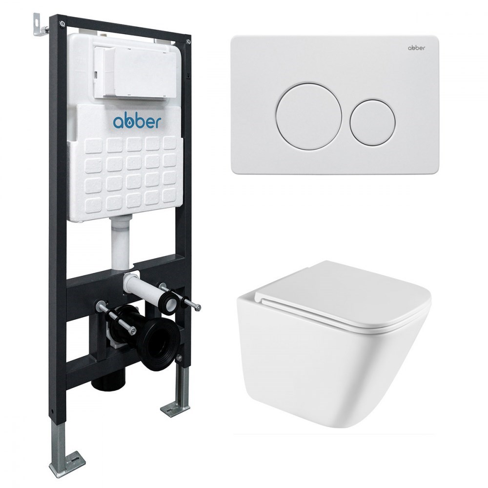 ABBER Комплект подвесной унитаз Rechteck AC1219TC белый, с закрытым дном с инсталляцией AC0105 и кнопкой AC0121MW белая матовая
