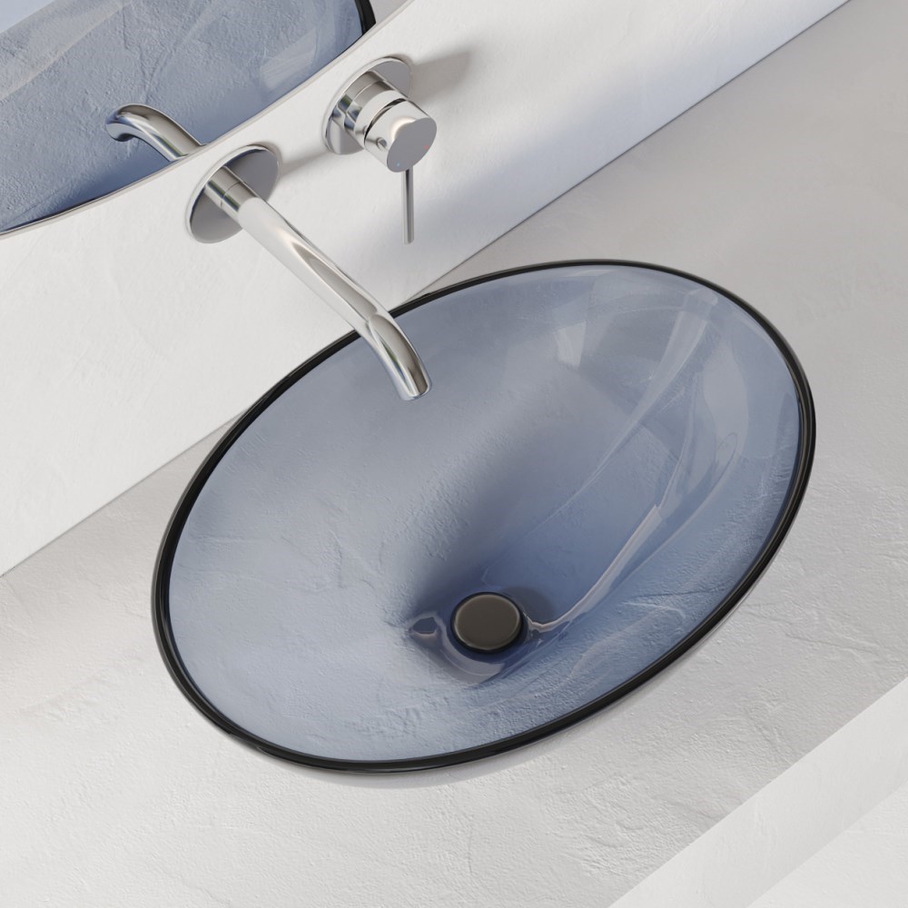 ABBER Раковина накладная прозрачная Kristall AT2802Saphir синяя