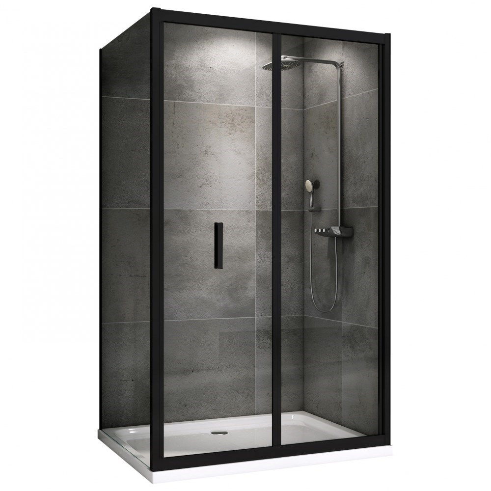 ABBER Sonnenstrand Душевой уголок прямоугольный двери складная размер 120x70 см, профиль - черный / стекло - прозрачное