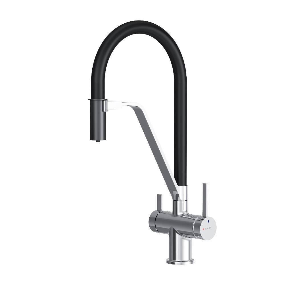 AM.PM Func Смеситель для кухни с каналом для питьевой воды и гибким изливом, хром,черн. излив
