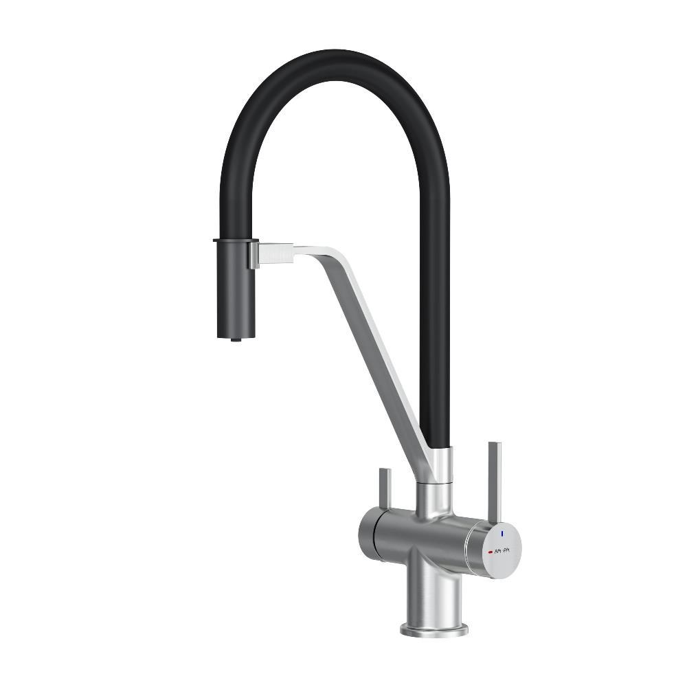 AM.PM Func Смеситель для кухни с каналом для питьевой воды и гибким изливом, сатин,черн. излив