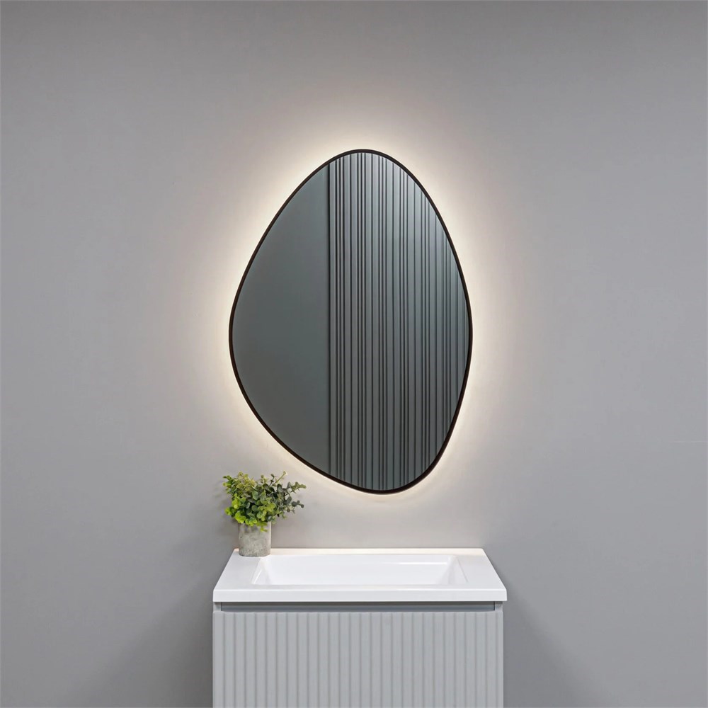 Назначение: для ванной; Монтаж: на стену вертикальный или горизонтальный; Подсветка: LED трех оттенков; Цвет рамки: черный; Управление подсветкой: сенсорное