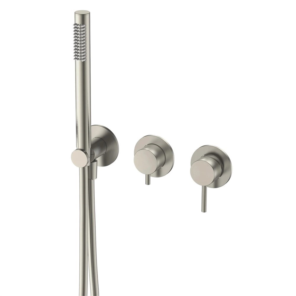 Для ванны и душа,встраиваемый смеситель, монтаж на стену, управление рычажное, материал латунь и пластик, душевой шланг в комплекте, душевая лейка в комплекте