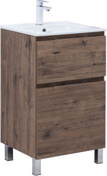 AQUANET Тумба с раковиной Алвита new 50 (Flat) напольная 2 ящ. цв.дуб веллингтон табак