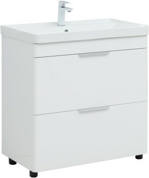 AQUANET Тумба с раковиной Ирис new 80 напольная 2 ящ. цв.белый глянец