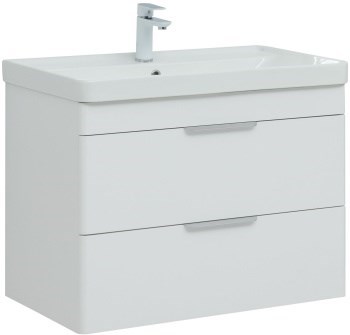 AQUANET Тумба с раковиной Ирис new 80 подвесная 2 ящ. цв. белый глянец