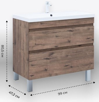 AQUANET Тумба с раковиной Нота New 100 напольная, дуб веллингтон табак