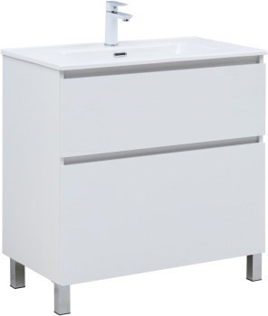 AQUANET Тумба с раковиной Вега 80 (Flat) напольная 2 ящ. цв. белый глянец