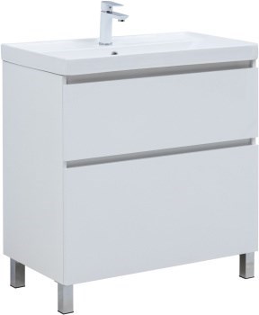 AQUANET Тумба с раковиной Вега 80 (Ирис) напольная 2 ящ. цв. белый глянец