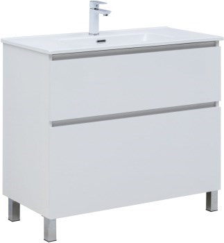 AQUANET Тумба с раковиной Вега 90 (Flat) напольная 2 ящ. цв. белый глянец