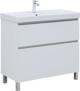 AQUANET Тумба с раковиной Вега 90 (Ирис) напольная 2 ящ. цв. белый глянец