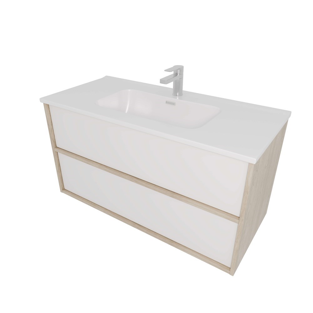 AQUATEK Комплект мебели: Тумба ЛИБРА с раковиной 100см, 2 ящика с системой push-to-open, корпус дерево,цвет фасадов белый мат