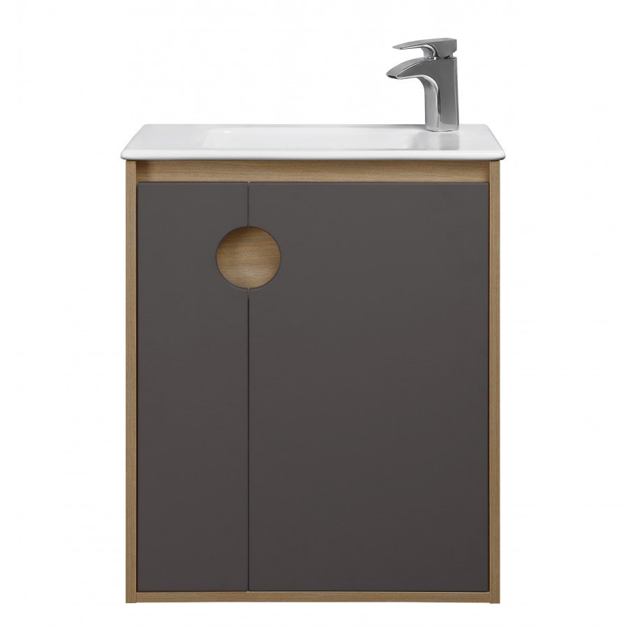 Тумба "Анси» подвесная, с распашными дверками выполнена в современном минималистичном стиле. Роль ручек играют круглые отверстия, которые придают мебели оригинальный вид. Тумба совместима с раковиной Debba, скрывает коммуникации и не затрудняет доступ для их осмотра. Корпус тумбы изготовлен из ДСП (древесно-стружечной плиты), покрыт полимерной меламиновой пленкой, устойчивой к влаге и механическим повреждениям. Благодаря матовой фактуре на покрытии незаметны разводы и следы от капель воды. Цвет - шоколад (боковины древесные). Особенности тумбы "Анси»: благодаря лаконичному дизайну выглядит гармонично и стильно в современном интерьере ванной; снабжена системой плавного закрывания дверок, которая обеспечивает их бесшумную и мягкую работу; укомплектована регулируемой внутренней полкой, которую можно установить на любой удобной высоте.