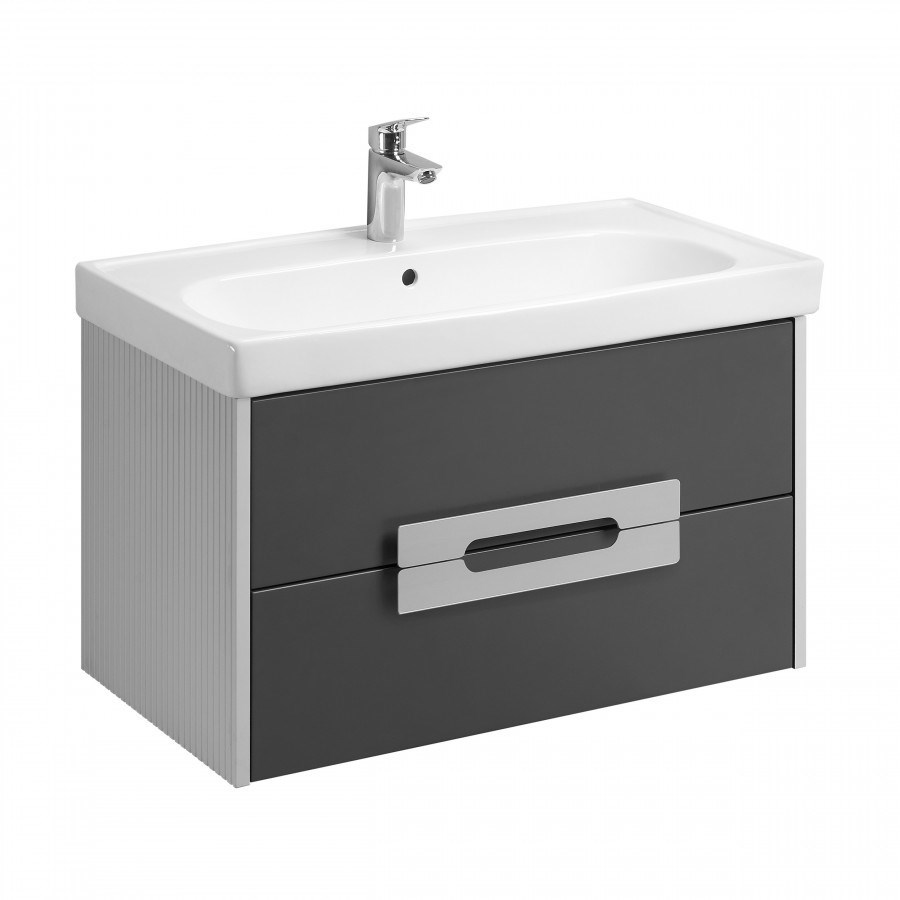Коллекция мебели Ар-Деко воплощает изящество и элегантность этого уникального направления. Каждая деталь коллекции от массивных хромированных ручек до фрезерованных панелей - продумана до мелочей. Тумба под раковину выполнена из высококачественной МДФ, покрытой матовой пленкой. Вертикальная фрезеровка на боковинах создает эффект визуального увеличения высоты изделия, придавая ему элегантность и изящество. В тумбе есть два вместительных ящика с эргономичной организацией пространства, которую можно настроить по своему удобству. Ящики открываются при помощи удобной ручки, а благодаря направляющим с доводчиками обеспечивается плавное закрывание, что гарантирует бесшумность и комфорт использования мебели. Данная тумба комплектуется раковиной Santek Нео Классик.