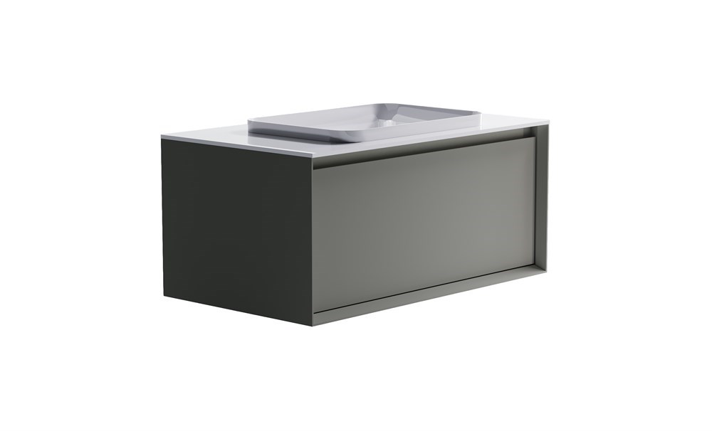 ASTRA-FORM Тумба подвесная Фрейм 100 с 1ящ NCS S 3502-y мат. с раковиной Антарес бел гл. и столешницей Solid бел гл.
