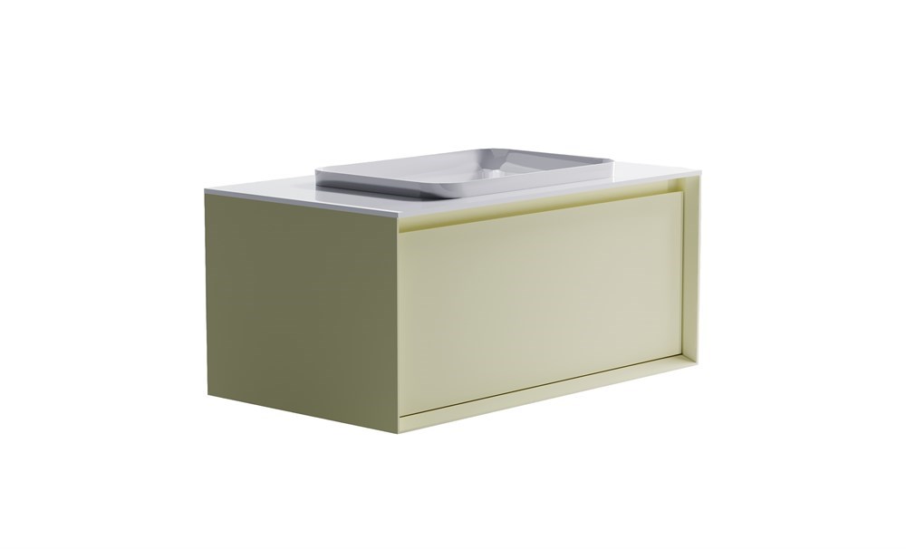 ASTRA-FORM Тумба подвесная Фрейм 100 с 1ящ RAL1013 мат. с раковиной Антарес бел гл. и столешницей Solid бел гл.