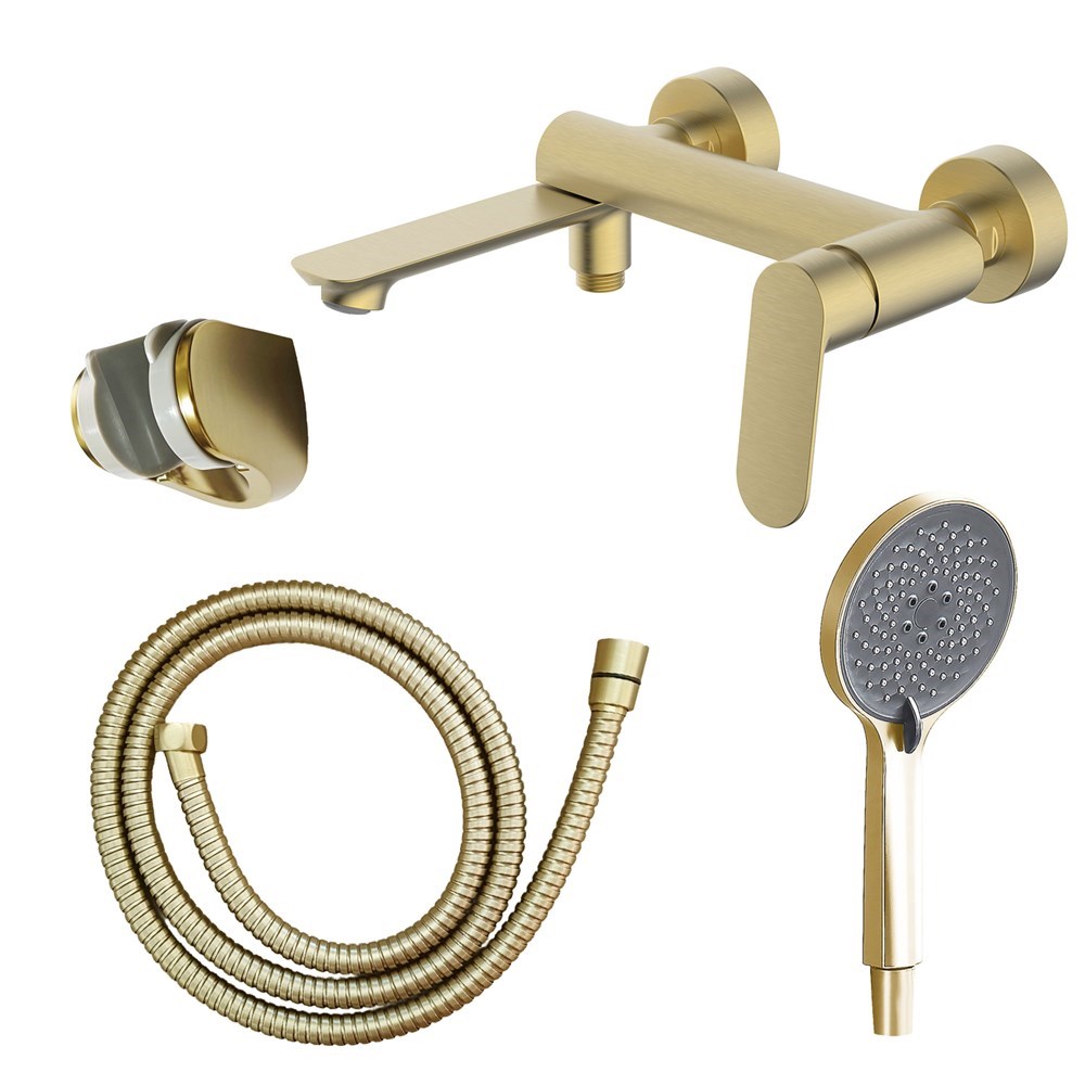 AZARIO Cмеситель для ванны Alanti с ручным душем, керамический картридж, шланг 150 см, золото матовое (AZ-K3032MG)