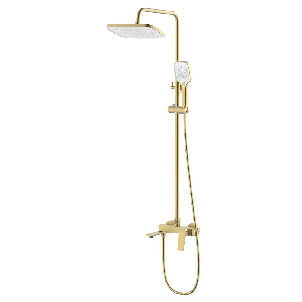 AZARIO Душевая система Lursy с квадратным тропическим душем, керамический картридж, шланг 150 см, золото матовое (AZ-K2349MG)
