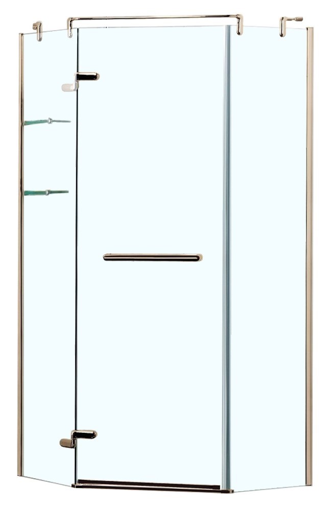AZARIO Душевое ограждение распашное MONTREAL 1000х1000х2000 L, со стеклянной полкой, без поддона, прозрачное стекло 8 мм,цвет профиля золото глянцевое (AZ-NWG3231 1000 L GOLD)