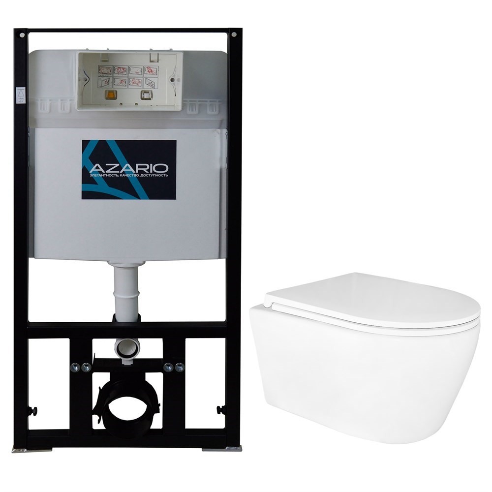 AZARIO Сет: Инсталляция для подвесного унитаза 3/6л. + Унитаз подвесной UNO безободковый, в комплекте сиденьем микролифт (AZ-8010-1000+AZ-2380)