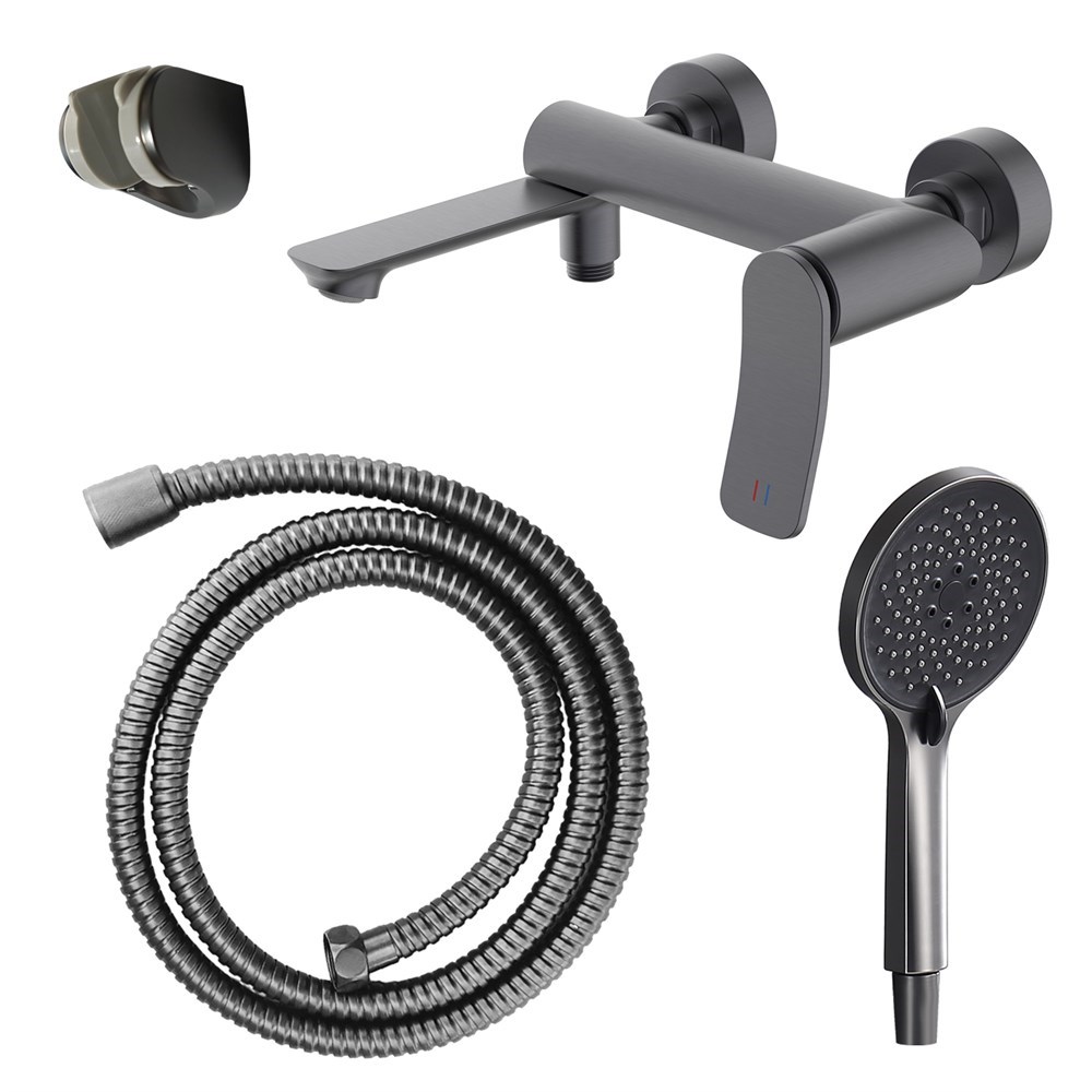 AZARIO Смеситель для ванны Escaro с ручным душем, керамический картридж, шланг 150 см, графит (AZ-K3074GR)