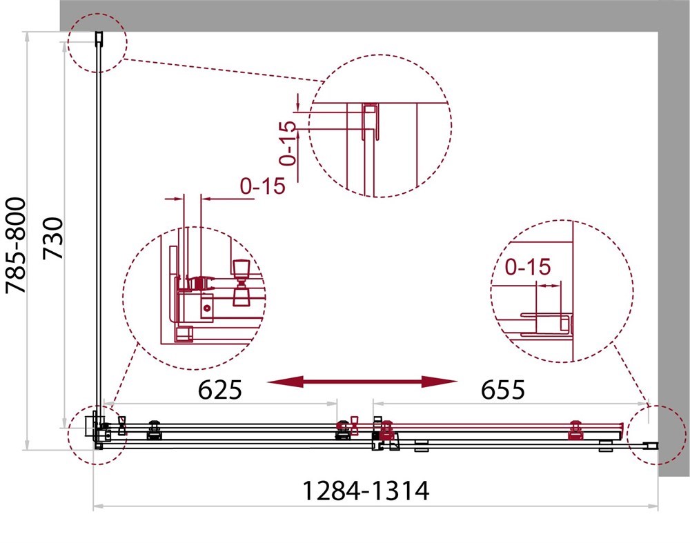 BELBAGNO Acqua Душевой уголок прямоугольный, размер 130х80 см, двери раздвижные, стекло 8 мм