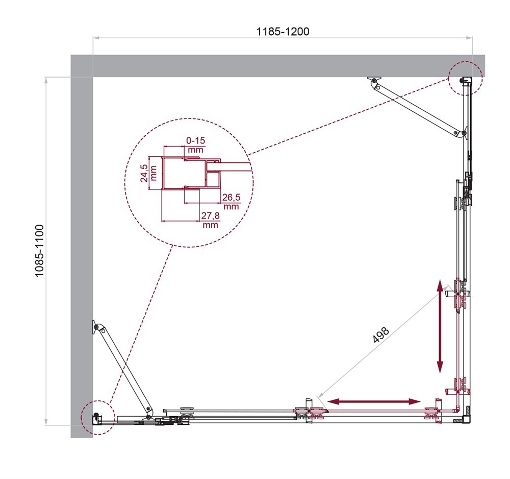BELBAGNO Luce Душевой уголок прямоугольный размер 120x110 см профиль - хром / стекло - прозрачное, двери раздвижные, стекло 6 мм