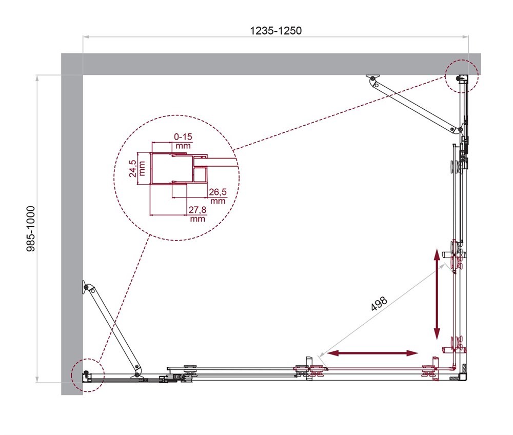 BELBAGNO Luce Душевой уголок прямоугольный размер 125x100 см профиль - хром / стекло - прозрачное, двери раздвижные, стекло 6 мм