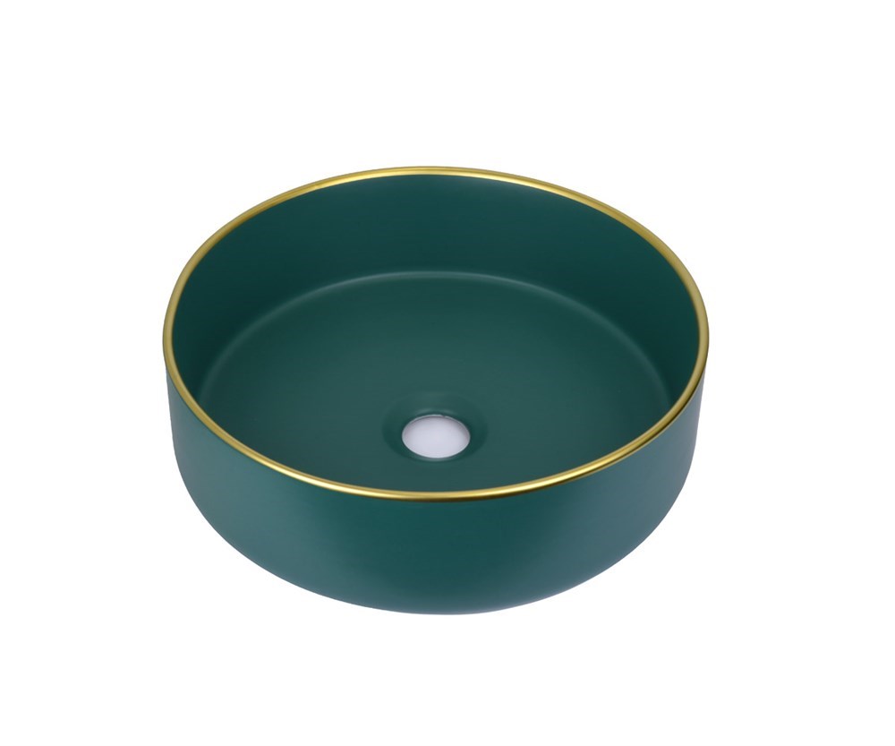 Удивительные керамические накладные раковины Golden Meadow имеют неповторимый глубокий зеленый цвет, и предлагаются в различных размерах и формах: 400х400х110 (квадратная), 605х350х110 (прямоугольная), 360х360х120 (круглая). Дополнительно накладные раковины Golden Meadow украшает аккуратная золотистая кайма по периметру борта каждой раковины, которая придает изысканность и завершенность каждой раковине. Сочетание стабильных цветов - глубокого зеленого и золотистого цвета позволят продумать совершенно уникальный дизайн ванной комнаты в различных вариантах и стилях: от минимализма до английской классики, от модерна до этно-стиля.