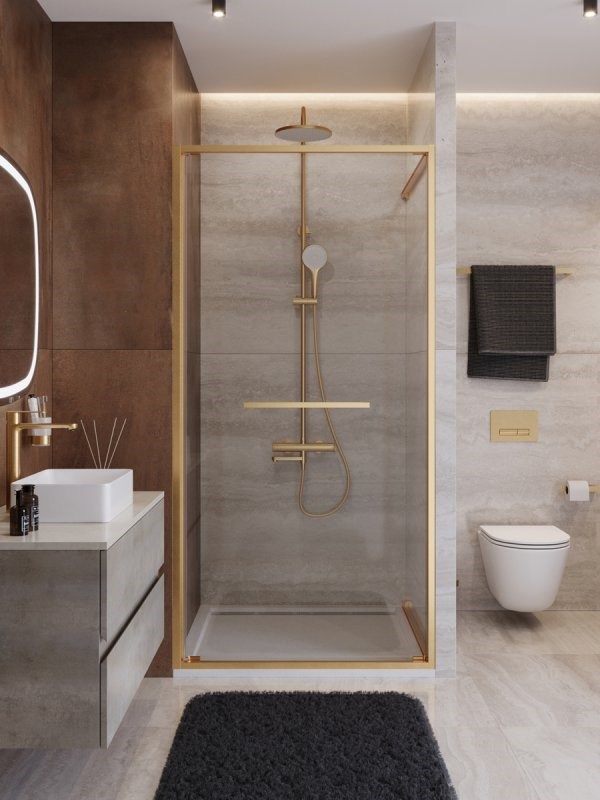 CEZARES Lux Душевая дверь в нишу раздвижная ширина 100 см, цвет профиль - золото брашированное / стекло - прозрачное