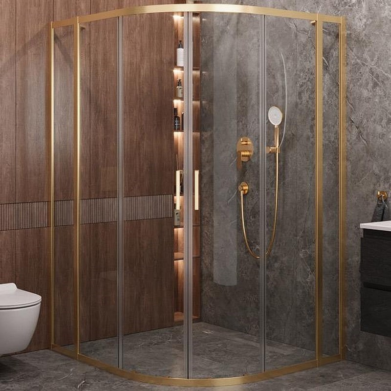 CEZARES Molveno Душевой уголок асимметричный размер 120x110 см двери раздвижные профиль - брашированное золото / стекло - прозрачное