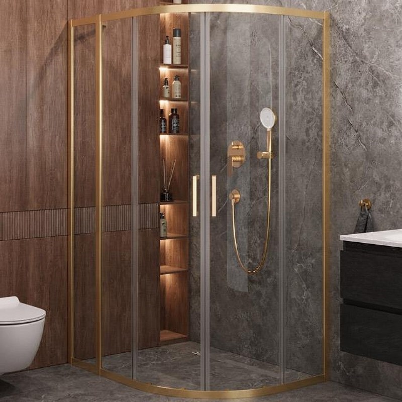 CEZARES Molveno Душевой уголок асимметричный размер 120x90 см двери раздвижные профиль - брашированное золото / стекло - прозрачное
