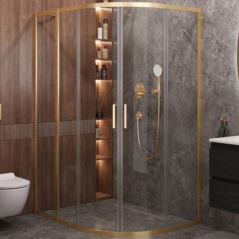 CEZARES Molveno Душевой уголок асимметричный размер 130x100 см двери раздвижные профиль - брашированное золото / стекло - прозрачное