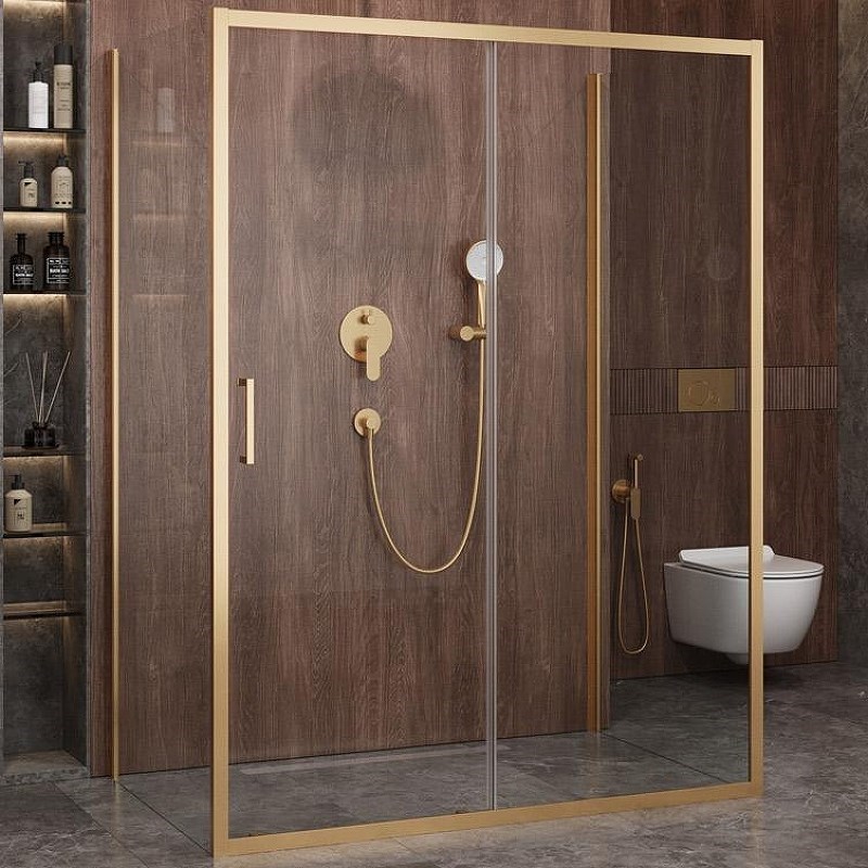 CEZARES Molveno Душевой уголок прямоугольный размер 150x90 см двери раздвижные профиль - брашированное золото / стекло - прозрачное