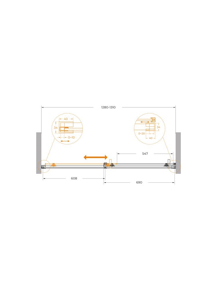 CEZARES Plane Душевая дверь в нишу раздвижная профиль - хром / стекло - прозрачное, ширина 130 см