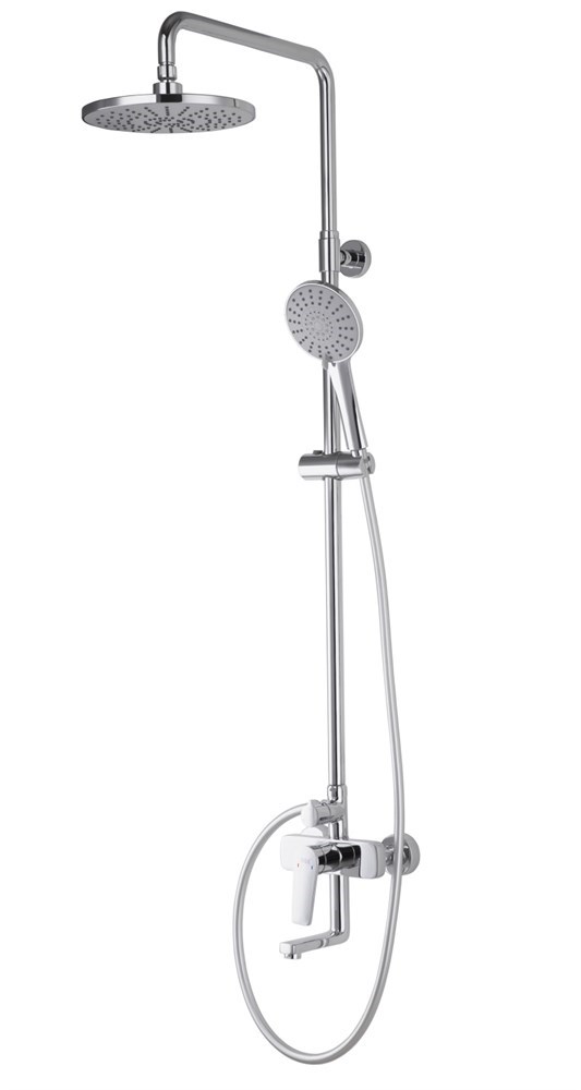 ОснащениеСмеситель, эксцентрики-2шт, декоративная шайба (отражатель)-2шт, штанга, крепление для штанги, кронштейн для верхнего душа, шланг душевой, лейка душевая, держатель душевой лейки, паспорт