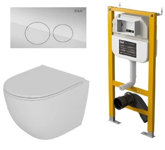 DK Комплект Унитаз подвесной безободковый D&K Matrix DT1396016+Инсталляция рамная скрытого монтажа D&K DI8050127, 500*117*1270мм, для подвесного унитаза+Клавиша смыва D&K Bayern DB1529001.2, хром