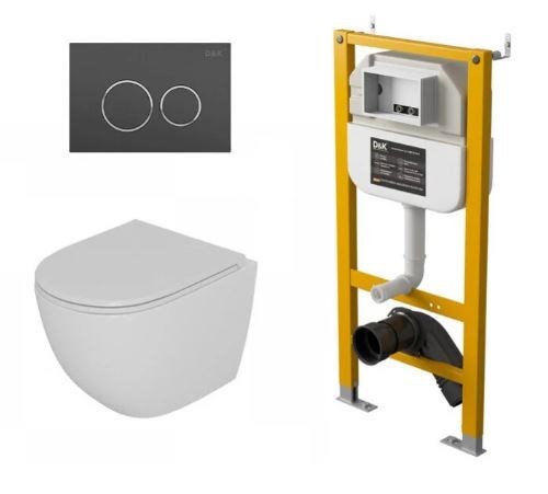 DK Комплект Унитаз подвесной безободковый D&K Matrix DT1396016+Инсталляция рамная скрытого монтажа D&K DI8050127, 500*117*1270мм, для подвесного унитаза+Клавиша смыва D&K Bayern DB1529006, графит