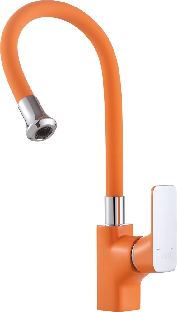 Строгие черты в дерзком оранжевом цвете подчеркивают индивидуальность каждой кухни. Ручка и излив правильно подобраны по размеру, для удобной повседневной эксплуатации на долгие годы.
