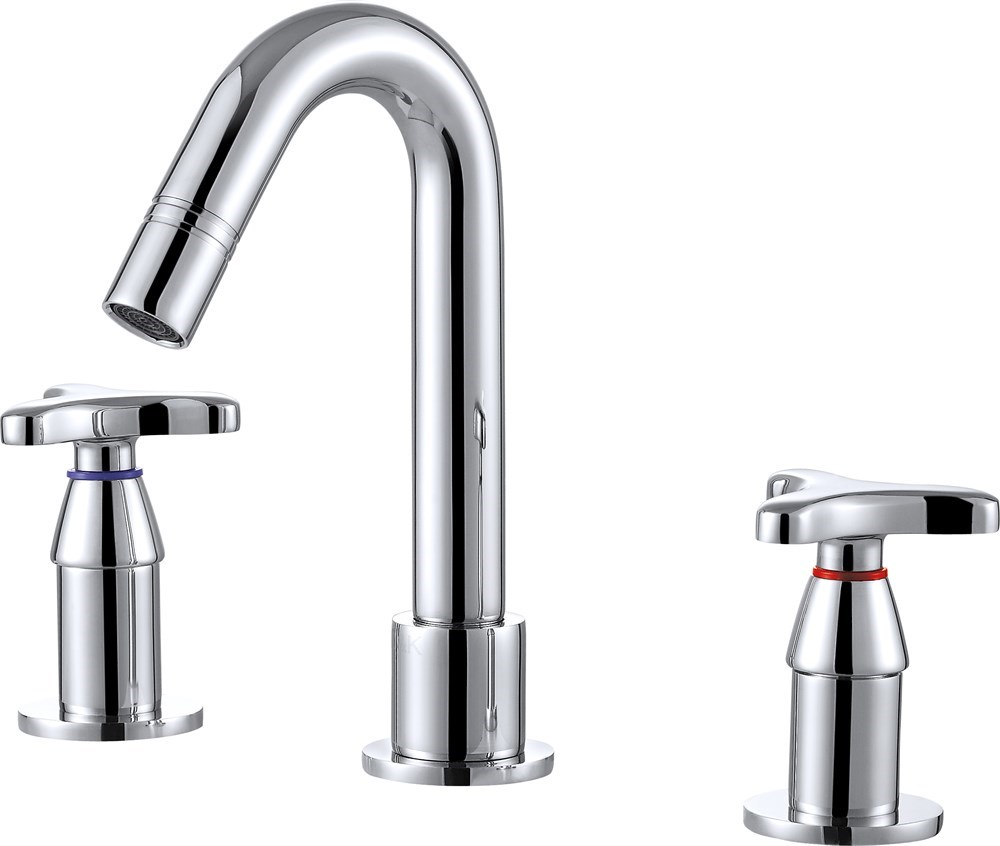 Блестящий внешний вид двухручкового смесителя с обновленными ручками привлекает своим внешним видом, послужит прекрасным дополнением классической ванной комнаты.