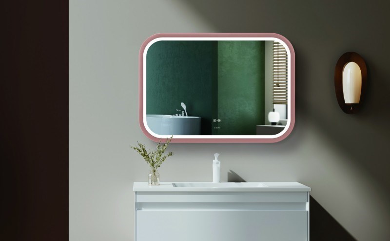 ESBANO Зеркало с подсветкой прямоугольное (ШxВ) 100x70 см, цвет золото розовое
