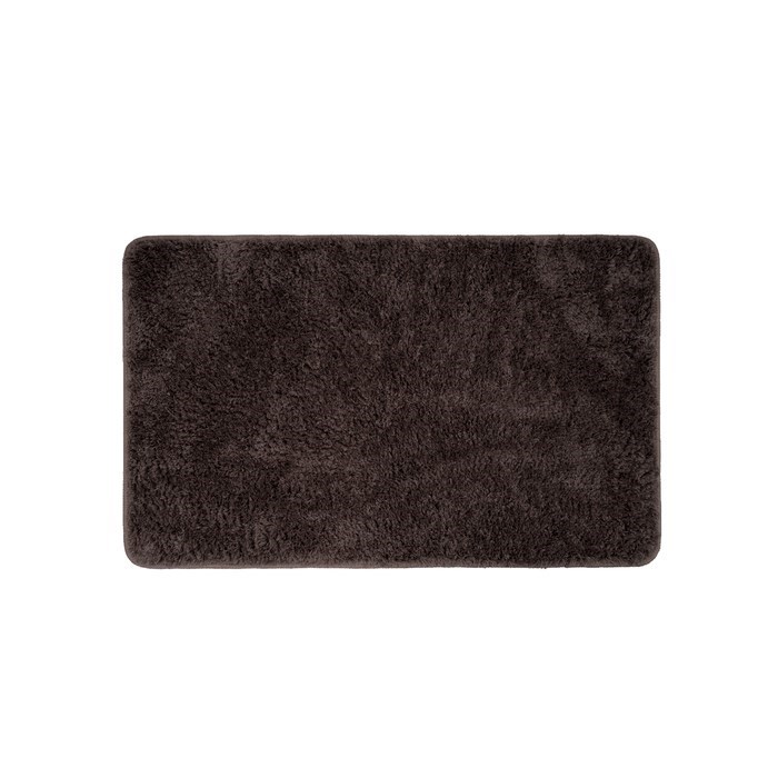 Мягкий коврик для ванной темно-коричневого цвета с плотным высоким ворсом (2 см), очень приятный на ощупь. Стриженый ворс из микрофибры отлично держит форму, легко чистится и быстро сохнет. Коврик подойдет для ванной и туалета.