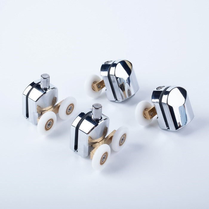 Комплект роликов для раздвижных дверей душевой кабины или ограждения. Подходят для стекол толщиной 4 мм. Комплект из 4 штук (2 верхних и 2 нижних ролика).