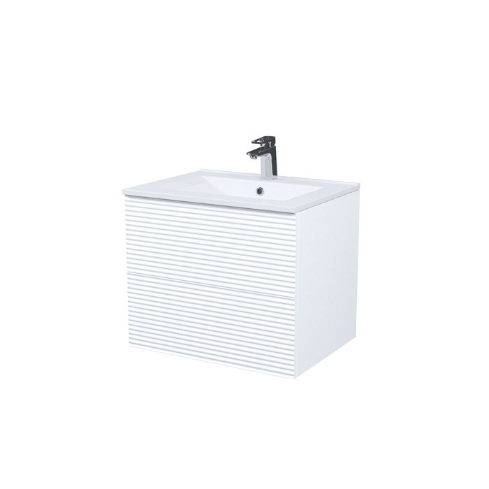 Компактная подвесная тумба для ванной комнаты Bild с умывальником и выдвижными ящиками – красивый дизайн с трендовой горизонтальной фрезеровкой в сочетании с универсальным белым цветом, удобством и практичностью.