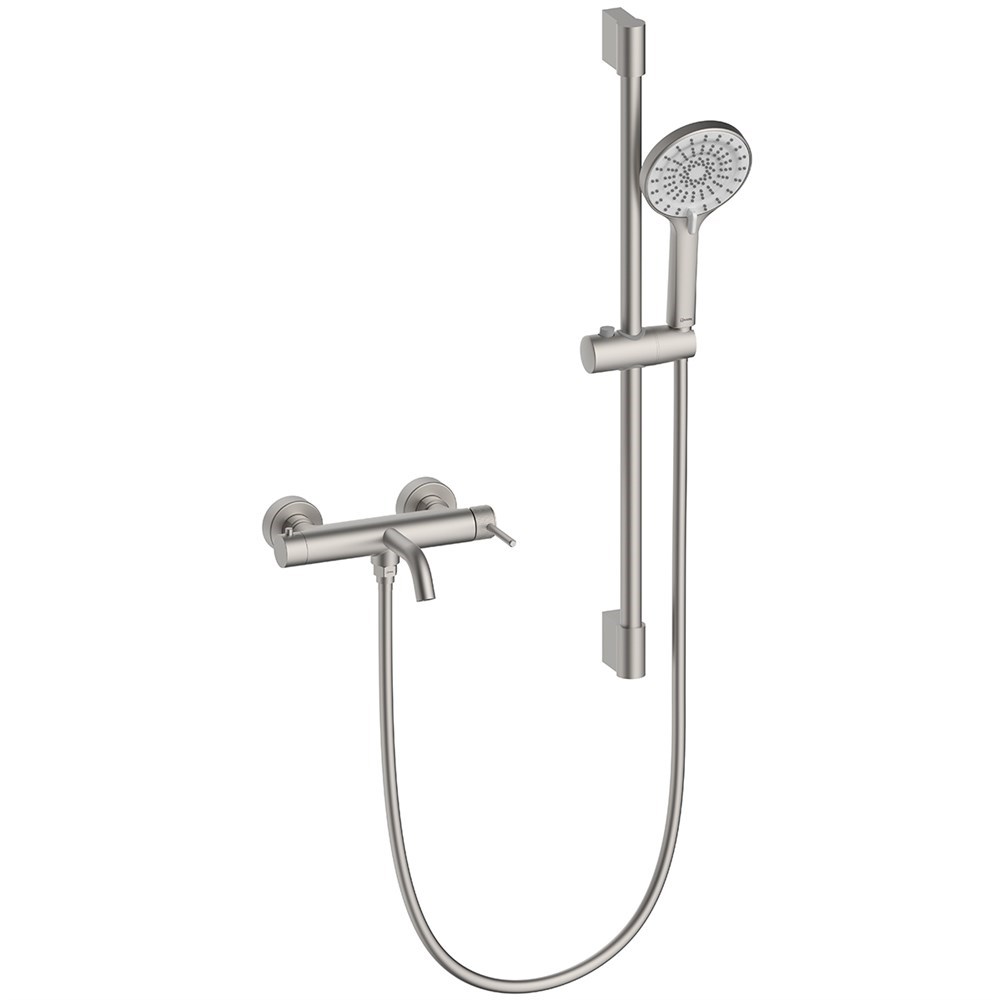 - Аксессуары в комплекте (3-функциональная лейка Ø120×252 мм, регулируемое по высоте крепление для лейки, душевой шланг (ПВХ) 1,5 м)