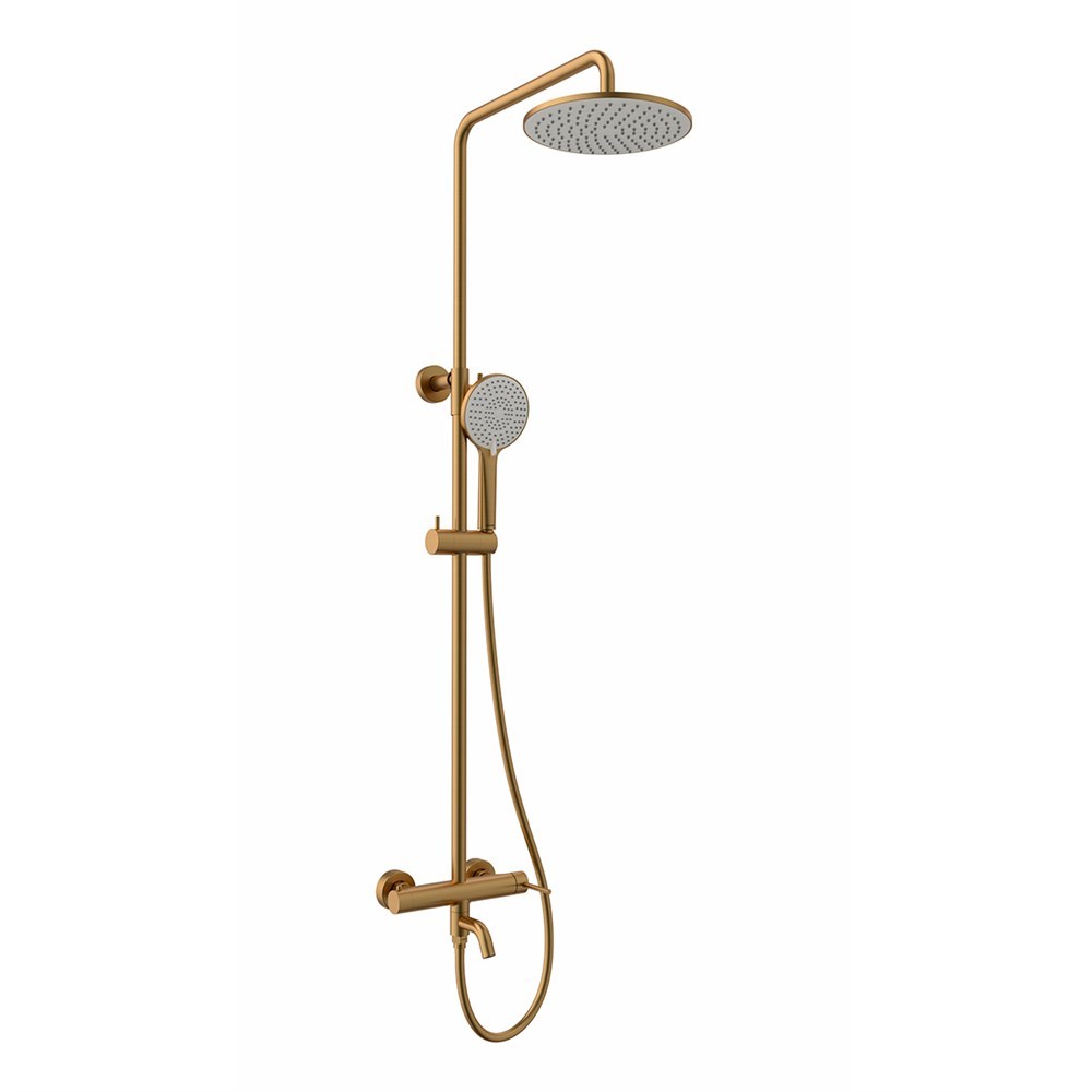 LEMARK Смеситель Kalina LMF-2126S-BRG для ванны и душа с регулируемой высотой штанги и лейкой верхнего душа «Тропический дождь», брашированное золото