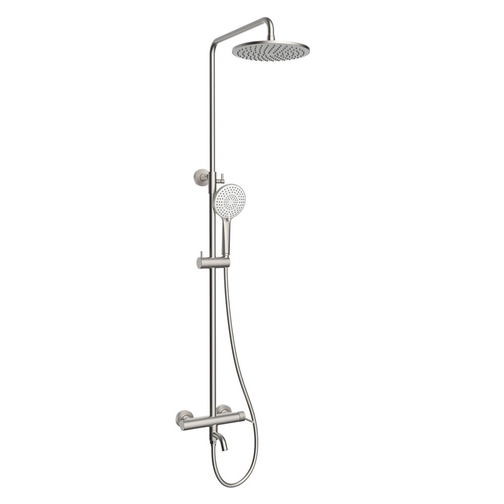 LEMARK Смеситель Karelia LMF-2026S-BN для ванны и душа с регулируемой высотой штанги и лейкой верхнего душа «Тропический дождь», брашированный никель